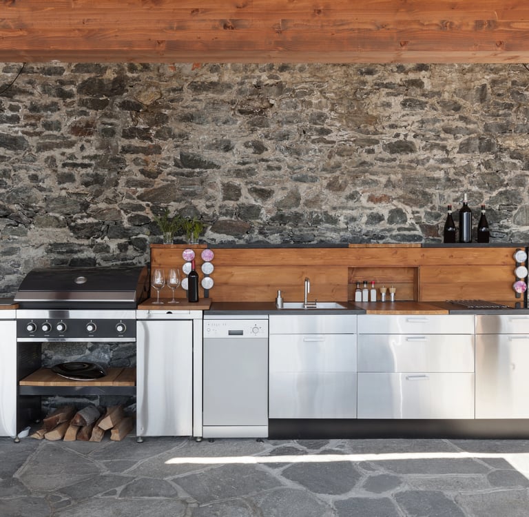 Utilizziamo acciaio di alta qualità e muratura per realizzare cucine su misura artigianali.